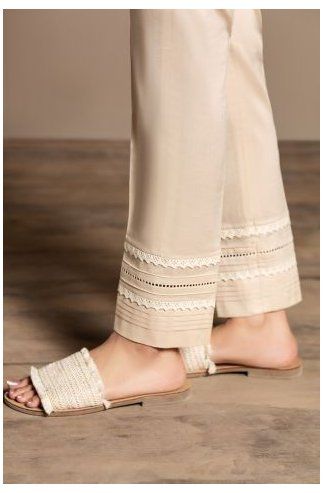 A chic straight trouser with edgy lace detailing on the sides going all the way from the bottom to the top. The perfect way to add an oopmh to any outfit, any day.